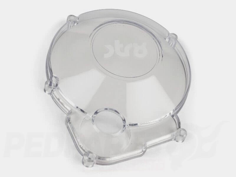 Give your engine bay a unique visual twist with this transparent ignition cover from STR8, designed specifically for 50cc geared mopeds with Minarelli AM6 engines. It replaces the original ignition cover and offers a clear view of the stator, adding a bold, custom look to your bike.