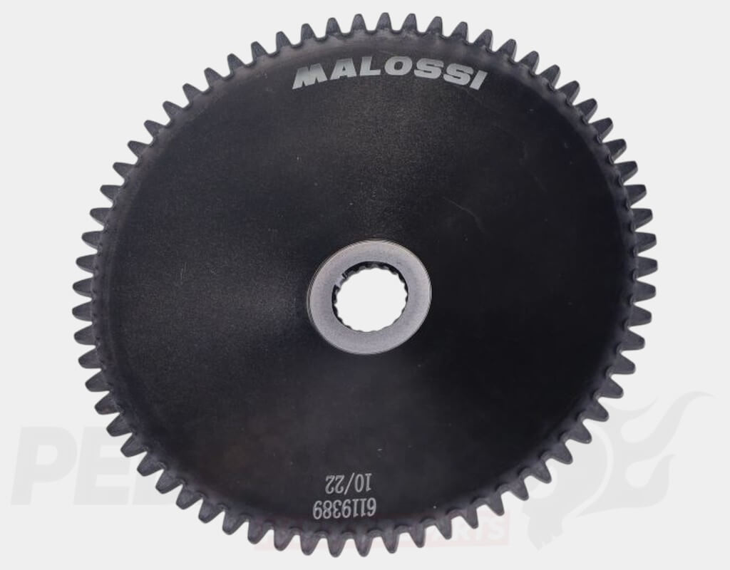 This high-quality half pulley features integrated geared teeth, designed to engage with an electric start motor, this is the only tuning pulley that is fully interchangeable with the original Piaggio pulley. The Malossi pulley is compatible with both Malossi MULTIVAR and standard variators. Crafted from carbon steel and surface-hardened, the pulley offers excellent durability and long service life, making it suitable for standard or tuned engines, providing reliable performance in everyday riding or sport applications.
