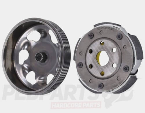The Malossi Maxi Fly System combines the reinforced Maxi Fly Clutch with the dynamically balanced Maxi Wing Clutch Bell for optimal transmission performance in high-demand street riding. Designed for durability, reliability, and smooth operation, this system handles city traffic, starts uphill, and rapid accelerations with ease.