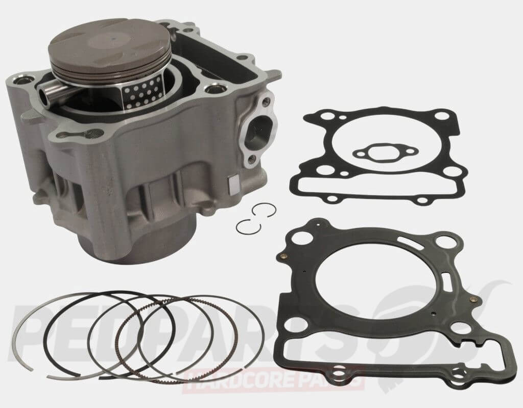 This is a high quality big bore cylinder kit. The materials and production method used is OEM equivalent quality. The piston has a special graphite coating to reduce the run-in phase.