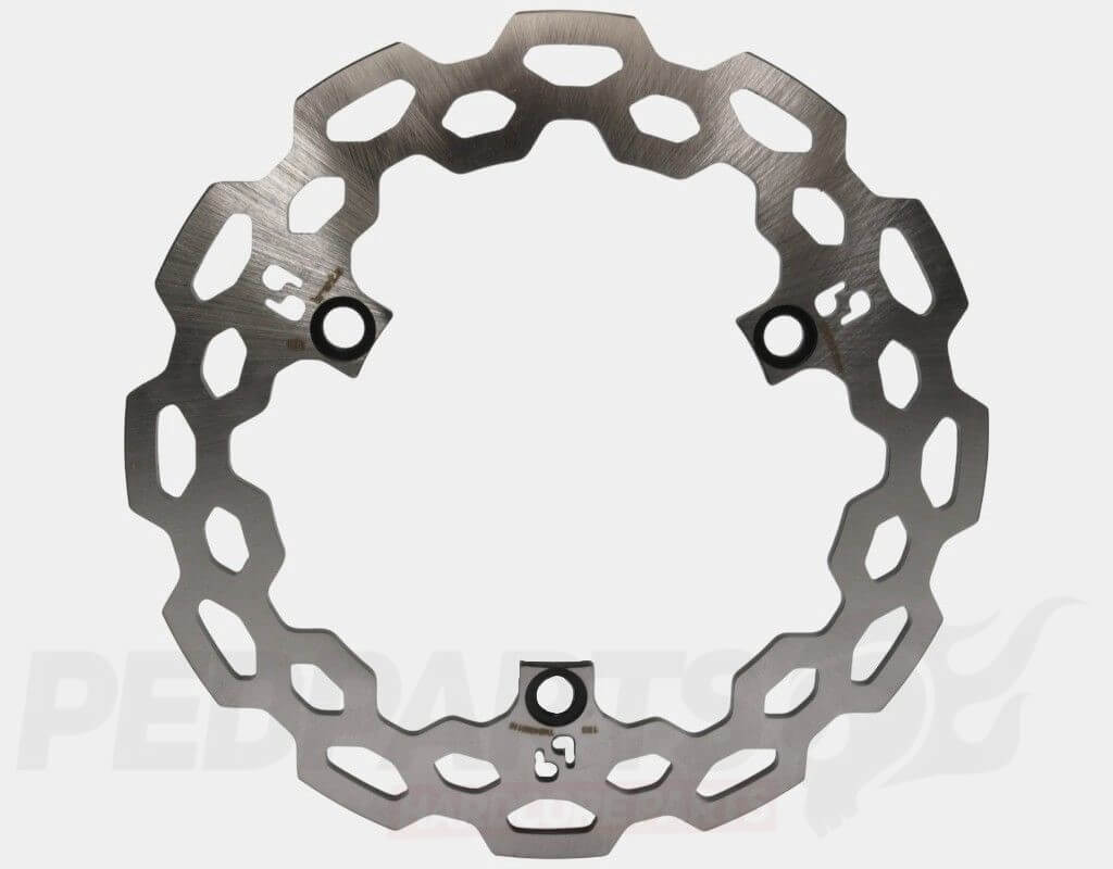 The disc’s advanced design maximises heat dissipation through increased airflow, while the specially shaped eyelets help clean the pads for stable, responsive braking in all conditions.