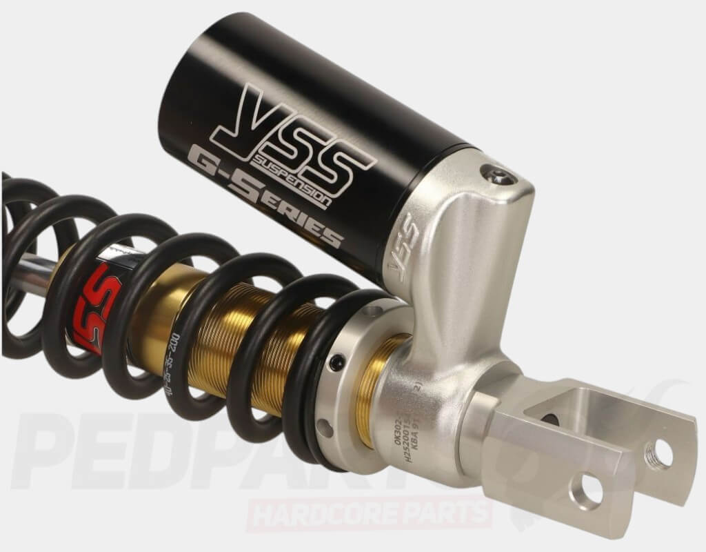 High-performance rear mono shock for scooters, featuring a bottom-mounted external reservoir piggyback gas design. Part of YSS’s Eco Line, it delivers improved damping and stability for everyday and sporty riding. Improves ride stability, handling, and shock absorption compared to standard rear suspension.