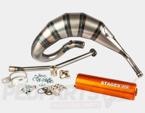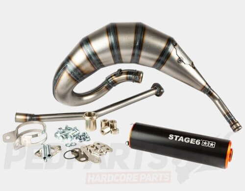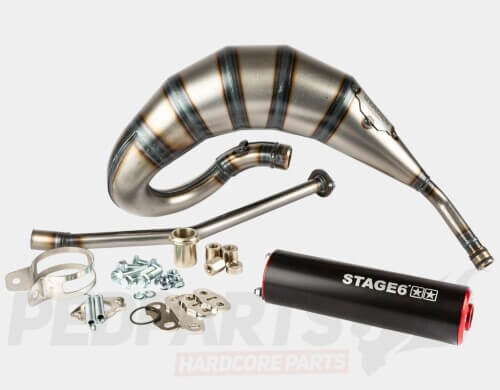 Stage6 have had these exhausts produced by to be the perfect match for their cast iron 77-88cc cast-iron Streetrace cylinder kits. These exhausts work well at mid-high engine speeds, while still producing big torque low down.