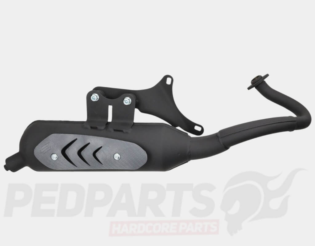 Polini presents the “Original” series exhaust, engineered to meet the demand for high-quality replacement parts for 50cc scooters. The exhaust body is fully made from steel with a matte black finish, and features an internal silencer designed to deliver solid performance while keeping noise levels low. An external heat-resistant bulkhead protects surrounding components from heat.