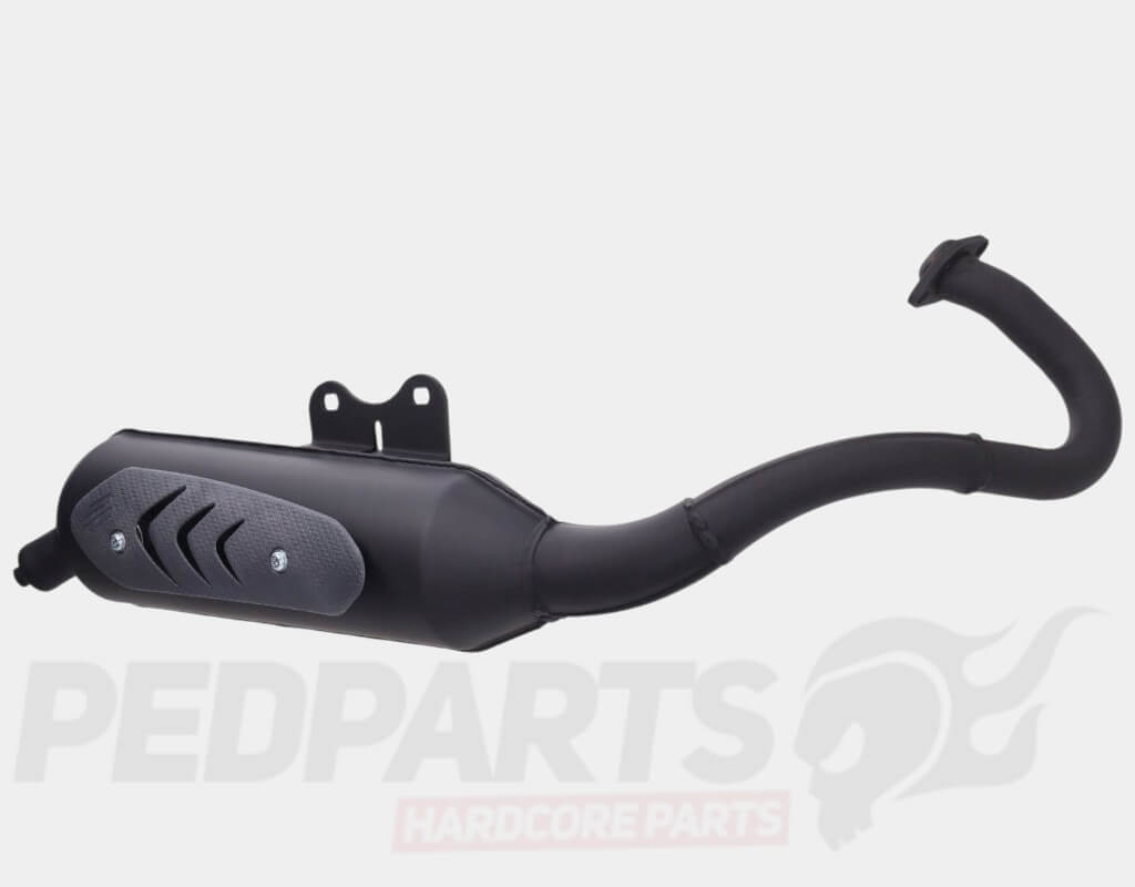 Polini presents the “Original” series exhaust, engineered to meet the demand for high-quality replacement parts for 50cc scooters. The exhaust body is fully made from steel with a matte black finish, and features an internal silencer designed to deliver solid performance while keeping noise levels low. An external heat-resistant bulkhead protects surrounding components from heat.