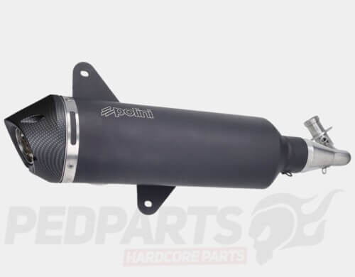 The Polini Evo' exhaust designed for Vespa GTS combines modern styling with performance, featuring a new aluminium tail with carbon-look graphics. Engineered to improve sprint and pickup, it ensures optimal engine response while remaining Euro5 homologated.