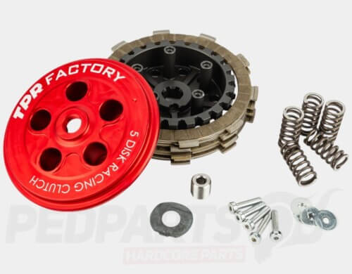 TPR Factory racing clutch kit for mopeds with Minarelli AM6 engines.
