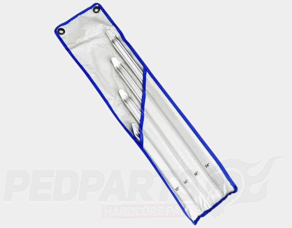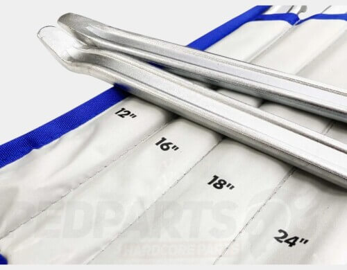 Hardened & tempered. Chrome plated Tough tetron storage pouch. For removing tyres from cars, vans, trailers, scooters etc.