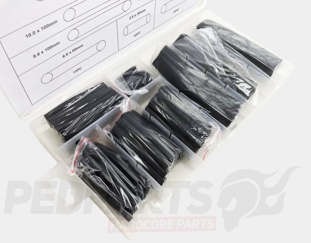 150 Piece black heat shrink tube assortment.