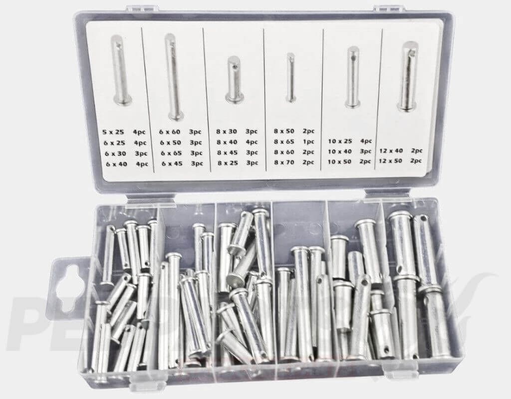 Chrome vanadium with zinc plating. Can be used with split pins for a more permanent fixing.