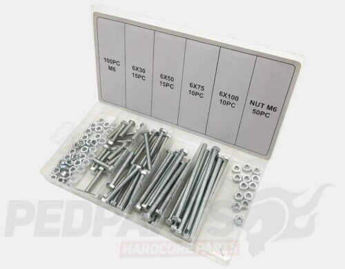 Included:M6 30,50,75 & 100mm bolts,M6 nuts.