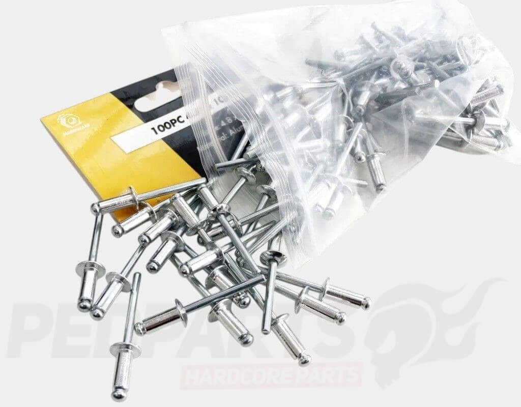 100 Piece low profile aluminium rivets.