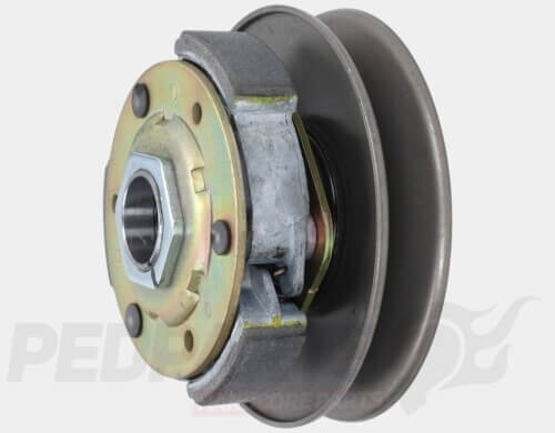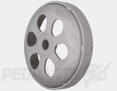 Rear pulley & clutch bell for Piaggio 125cc 2-stroke non-rolling nut engines (without bearing in kickstart cover).