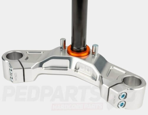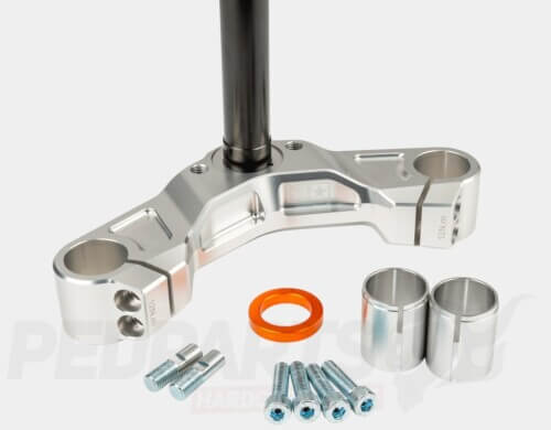 Made from high-strength aluminuim, this triple clamp ensures low weight, maximum durability, and consistent performance under heavy use. It supports both 30mm and 33 mm fork tubes thanks to included reduction bushings. The hard-anodised finish and KTL-coated steering tube provide excellent corrosion resistance.