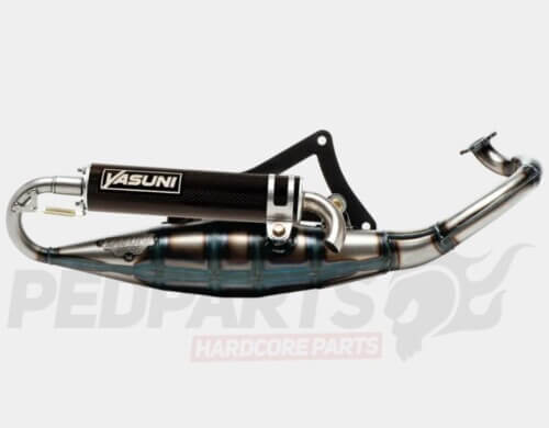 The Yasuni R exhaust system is the big brother of the Yasuni Z. Whilst it still works very well with even completely standard 50cc cylinders it really comes into its own when married to a 70cc sports cylinder (e.g. Malossi, Polini Sport 70cc) or low to mid race cylinders (e.g. Malossi 70cc MHR Replica, Polini Corsa, Stage6 Sport Pro 70cc).