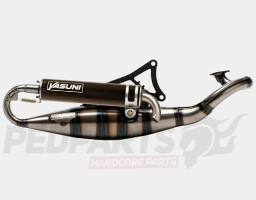 The Yasuni R exhaust system is the big brother of the Yasuni Z. Whilst it still works very well with even completely standard 50cc cylinders it really comes into its own when married to a 70cc sports cylinder (e.g. Malossi, Polini Sport 70cc) or low to mid race cylinders (e.g. Malossi 70cc MHR Replica, Polini Corsa, Stage6 Sport Pro 70cc).