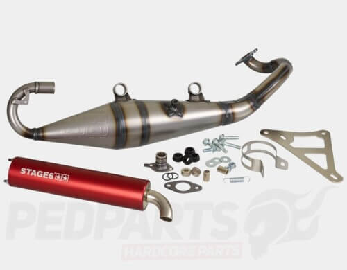 This is the MKII version of the classic Stage6 tuning exhaust. Perfect for 50-70cc cylinders. This exhaust is road legal with CE mark (homologated). Elaborate details such as the spring at the rear silencer or the Stage6 logo which is stamped into the exhaust, enhance the system optically and technically.