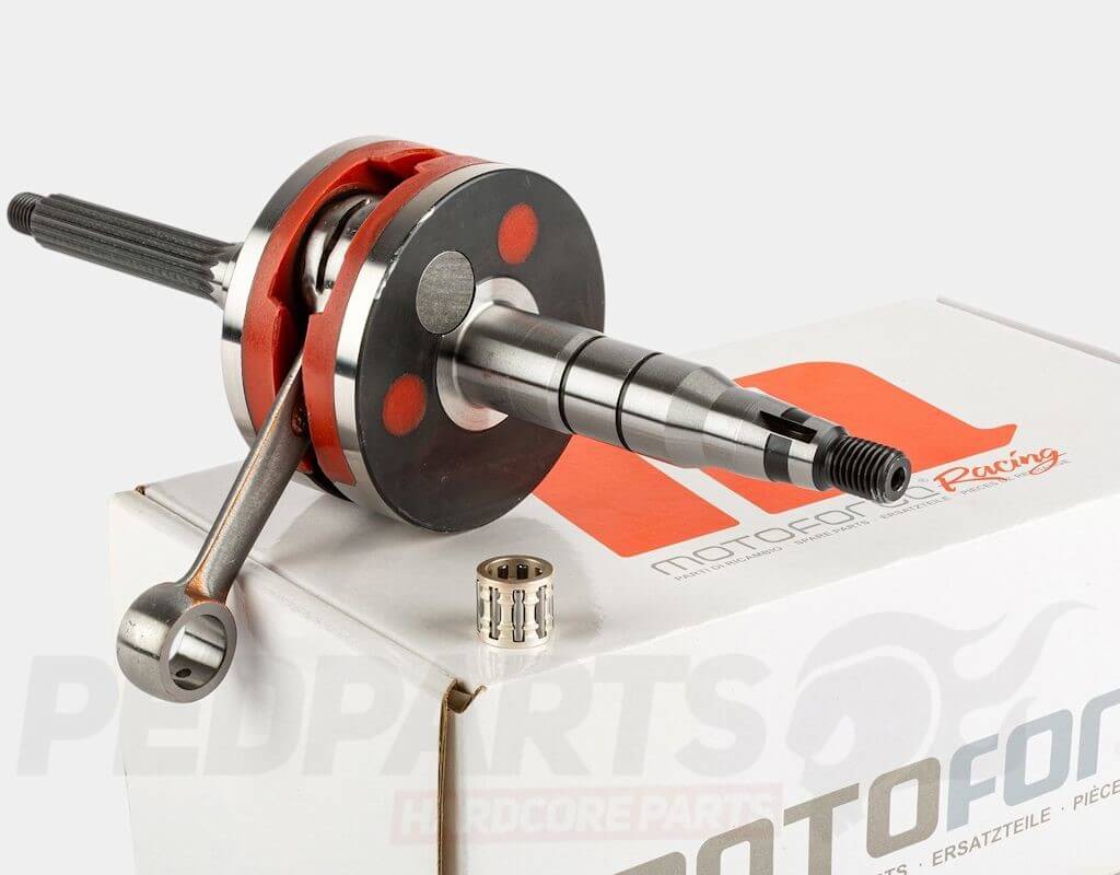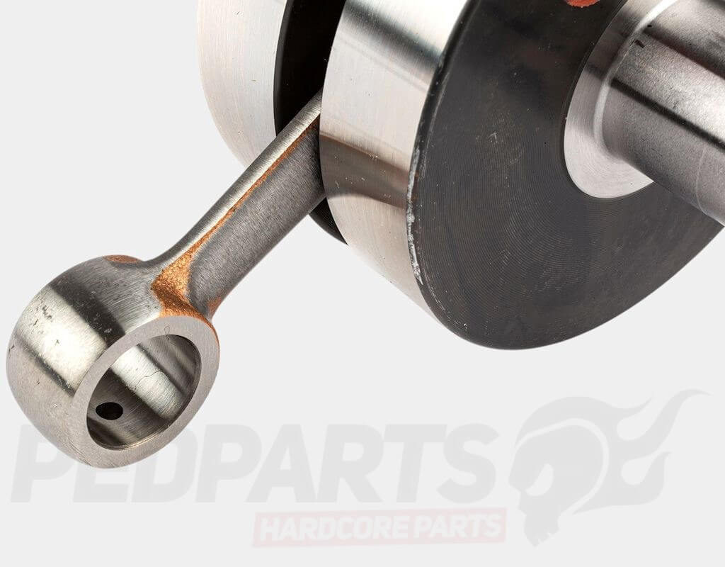 Full circle race crank for Yamaha Aerox/ minarelli engines, this crank is suitable for anything up to sport 70cc or low to mid race cylinder kits and is ok for up to around 13,000 RPM.