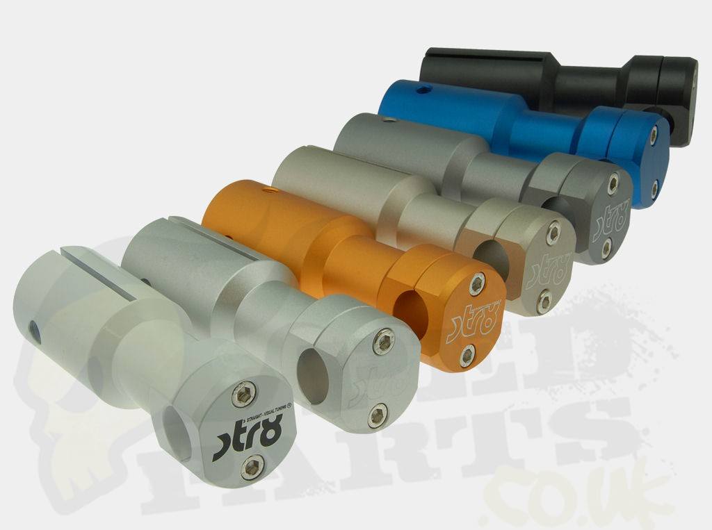 Handlebar conversion stem from STR8 for Peugeot scooters like Speedfight 1/2, Ludix, Jetforce & Vivacity.