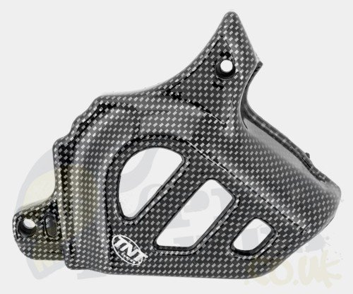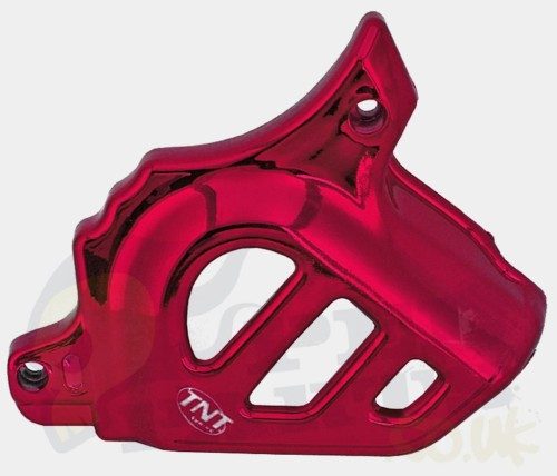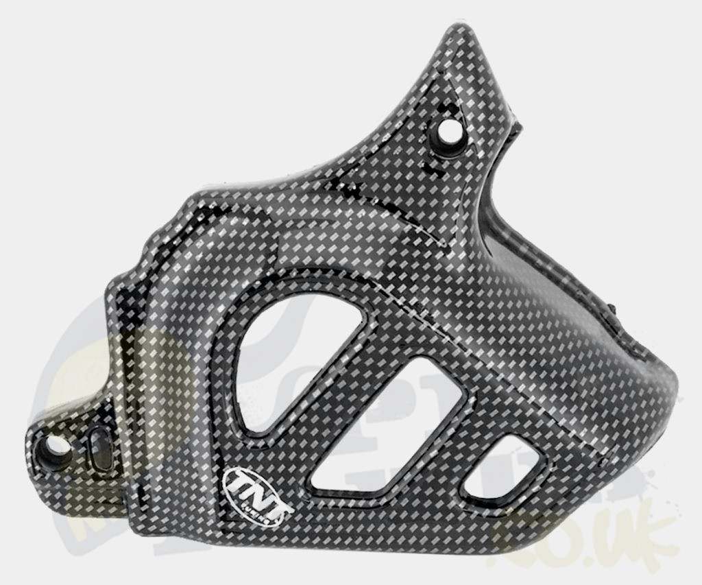 TNT plastic front sprocket cover for motorcycles using a Minarelli AM6 2-stroke engine. Like Aprilia RS, RX & Yamaha DT, TZR.