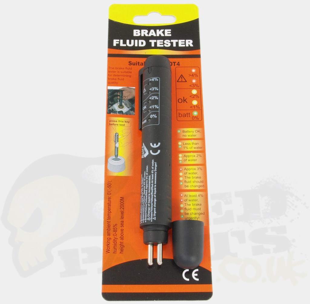 LED lights show what percentage of moisture is in the brake fluid. Result shows after only a few seconds.