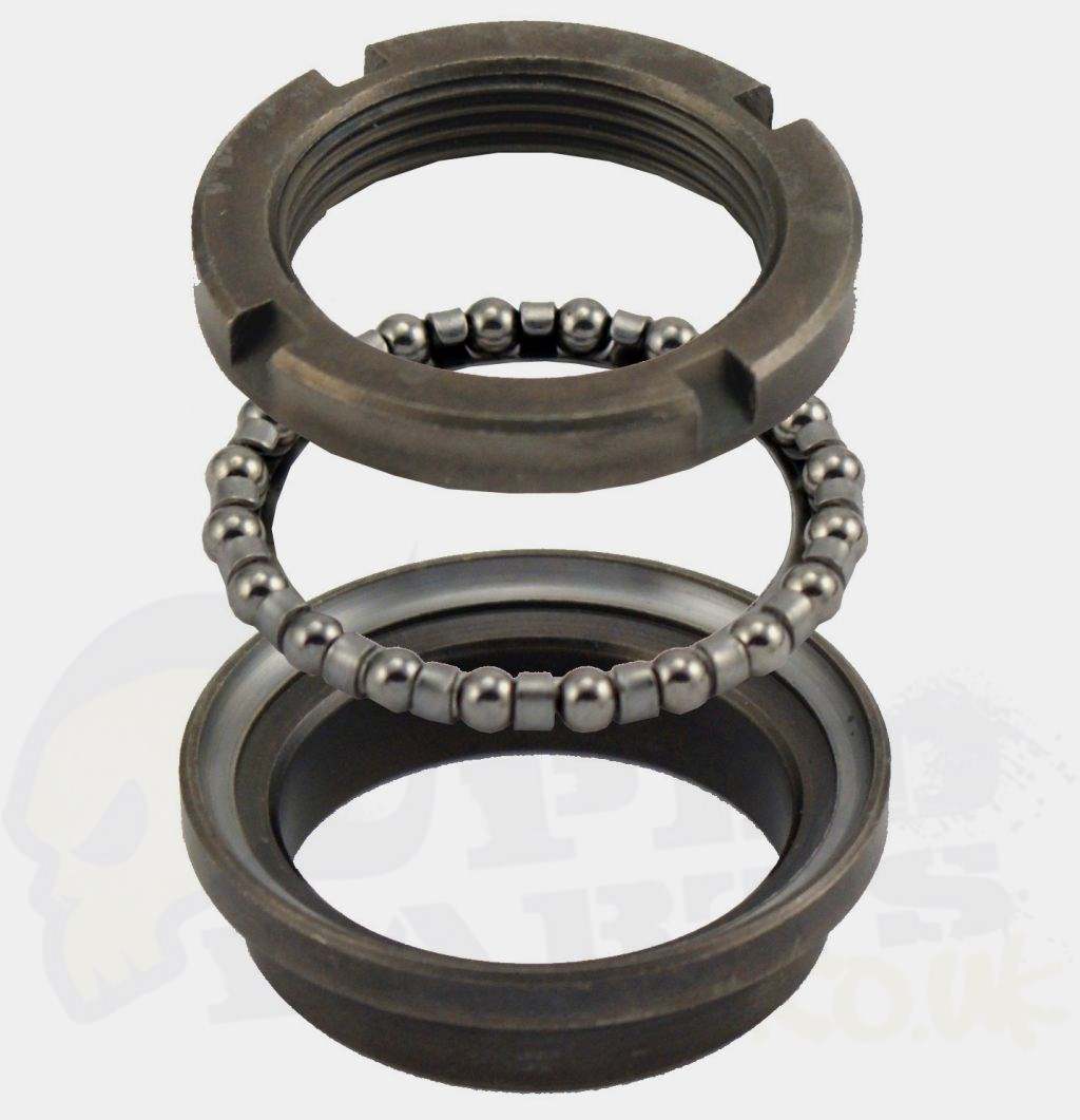 When exchanging the fork or noticing too much play in the steering assembly, you should replace the steering head bearings. Bearings have to be greased before assembling them.