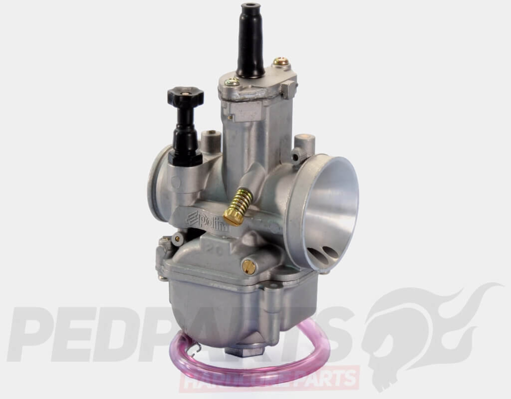 Polini 28mm flat slide racing carb with manual pull choke.