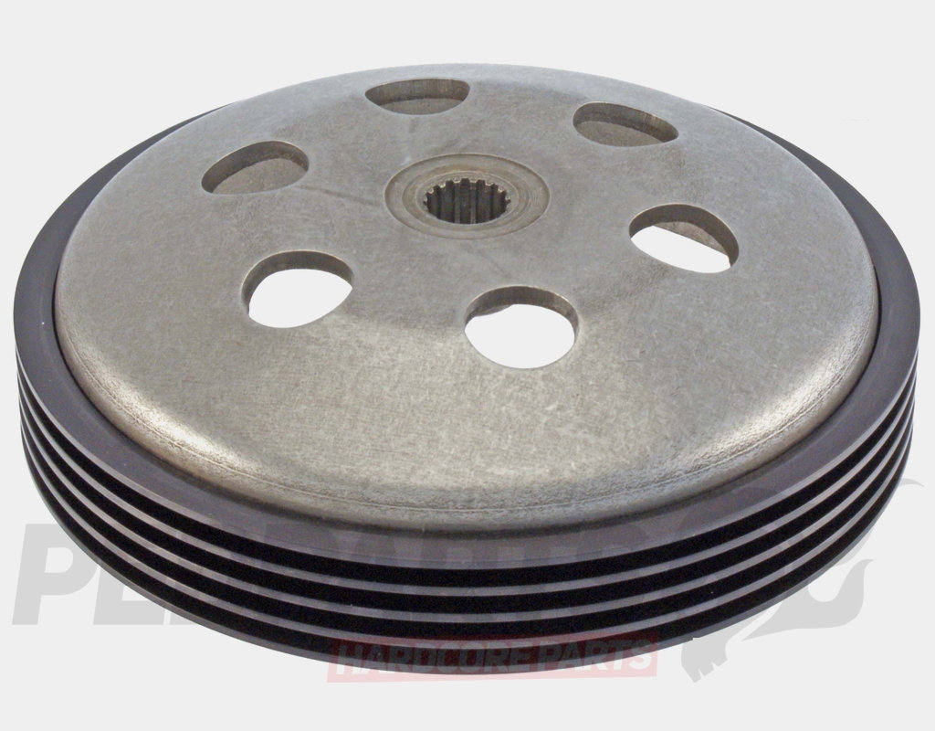 RMS racing clutch bell for scooters using Minarelli 50cc 2-stroke engines with 107mm clutches.