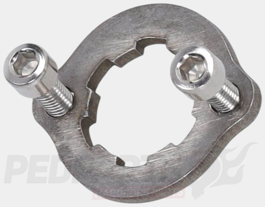 Front sprocket retainer for mopeds using Derbi D50B0/1 engines.