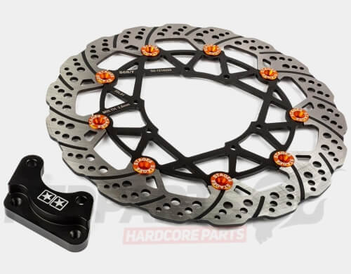 Stage6 R/T floating oversized front disc brake for Aprilia RX50 produced after 2006 and Derbi Senda 50cc mopeds.