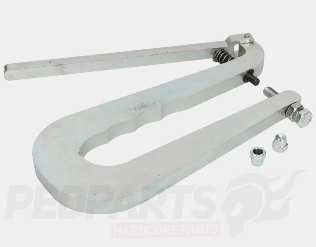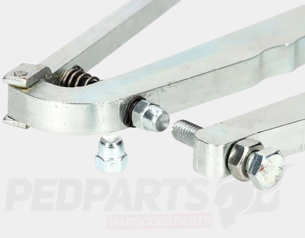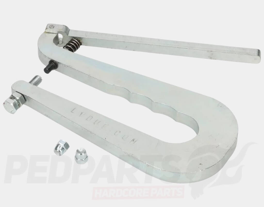 Floor runner riveting tool for Vespa smallframe, largeframe, wideframe, PX and PK models.