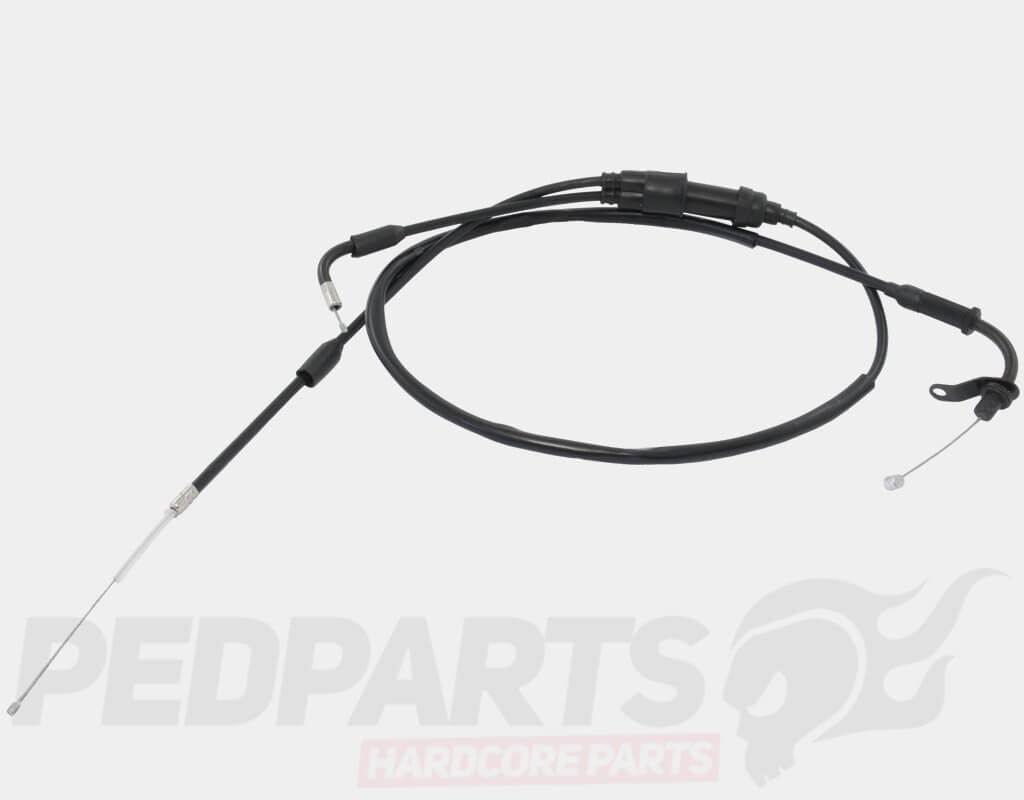 Complete replacement throttle cable including rubber boots & cable splitter.