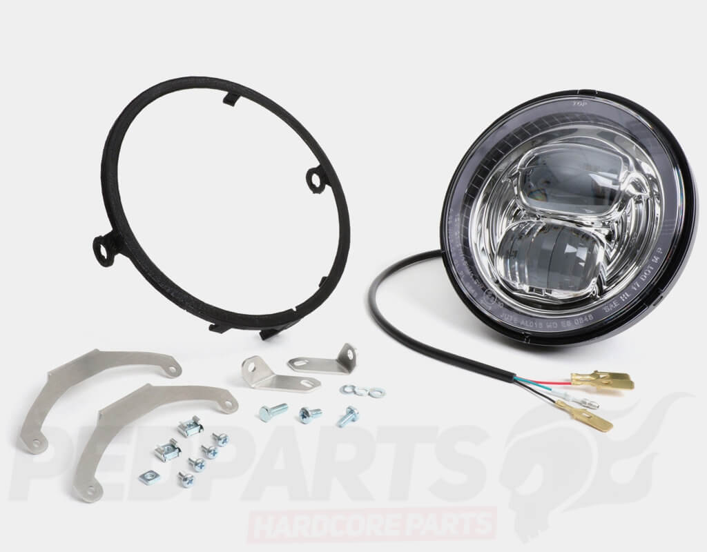 Moto Nostra LED headlight for Vespa PX125-200 scooters.