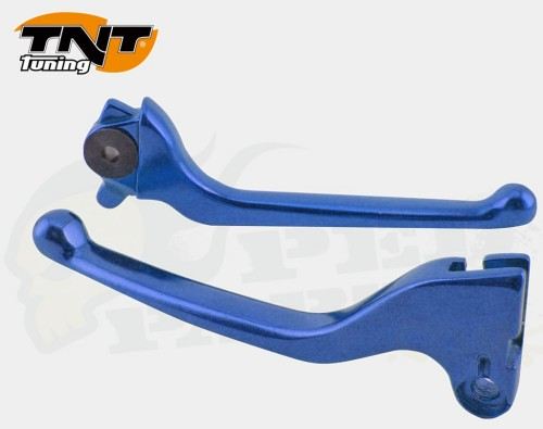 Pair of brake levers for Yamaha Jog mopeds using a front hydraulic and a rear drum brakes.
